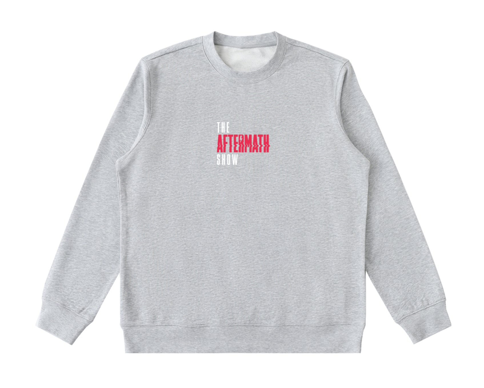 Crafted from a soft, mid-weight heather gray cotton blend, this sweatshirt features a high-quality embroidered Aftermath Show logo on the chest — detailed, textured, and built to last.