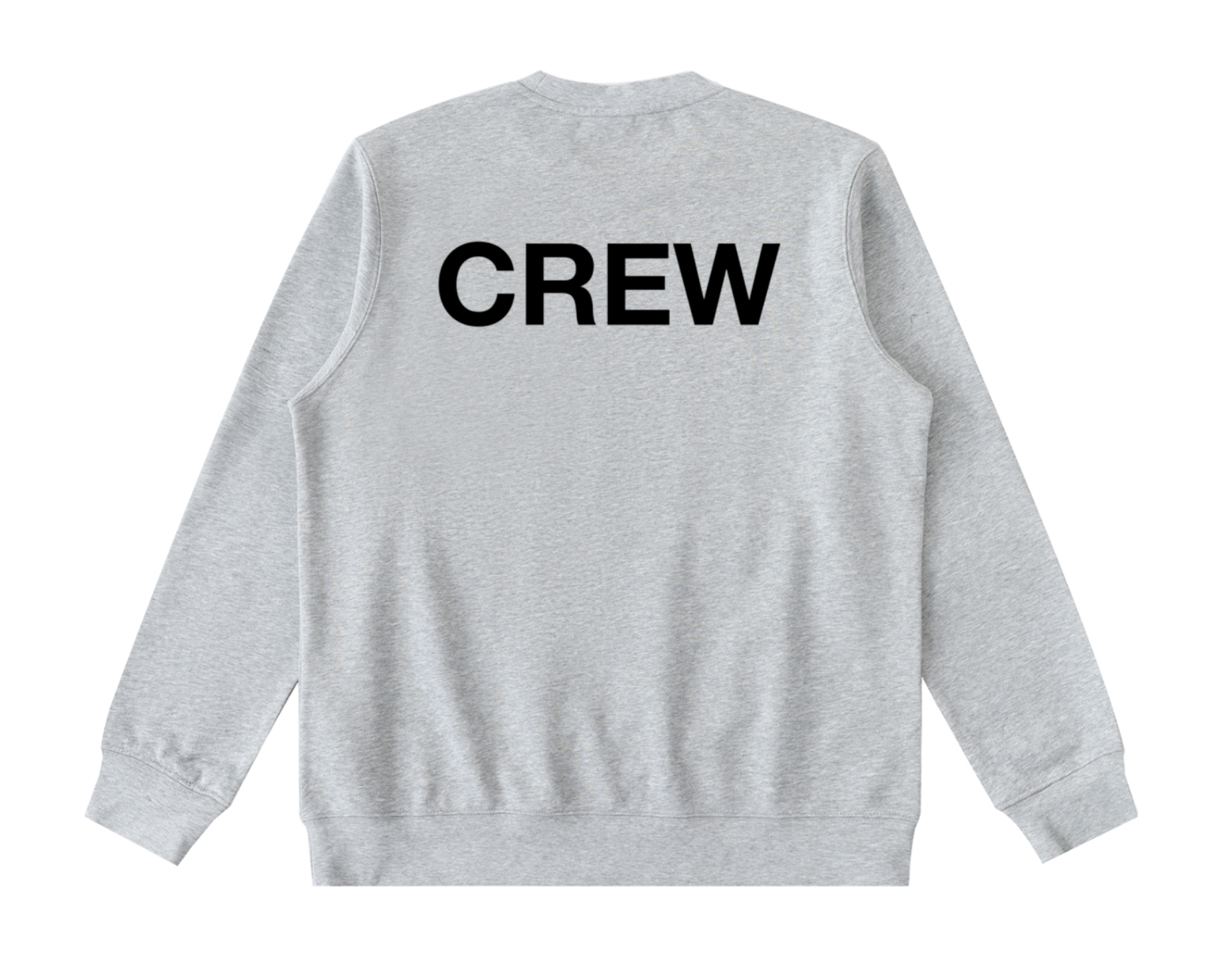 The back delivers a bold contrast with a large CREW print in solid black.